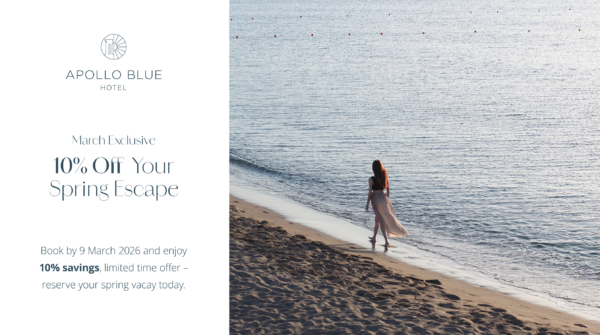 Spring is the perfect moment to start planning the getaway you deserve. As the days grow brighter and the island of Rhodes awakens in colour, Apollo Blue invites you to enjoy a relaxing escape by the Aegean Sea.